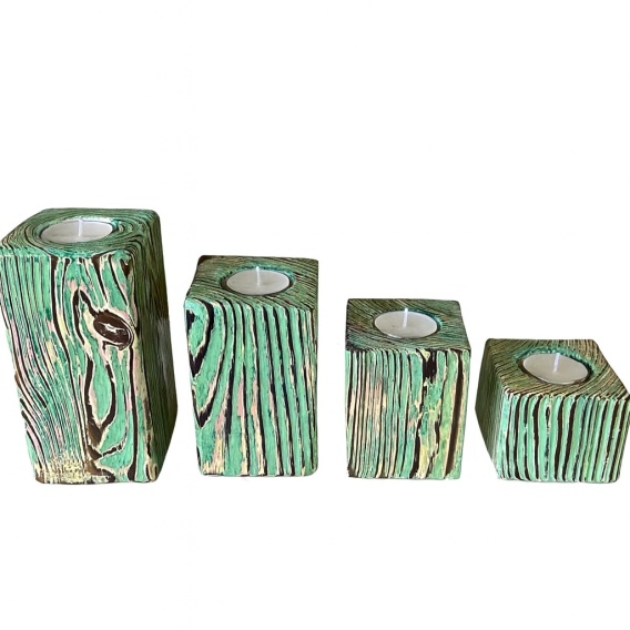 Nasz komplet drewnianych świeczników to idealne uzupełnienie Twojego wnętrza. Każdy z nich został wykonany ręcznie, co sprawia, że są one niepowtarzalne i pełne charakteru. Ich naturalna tekstura i ciepły kolor drewna wprowadzą do Twojego domu przytulną atmosferę.