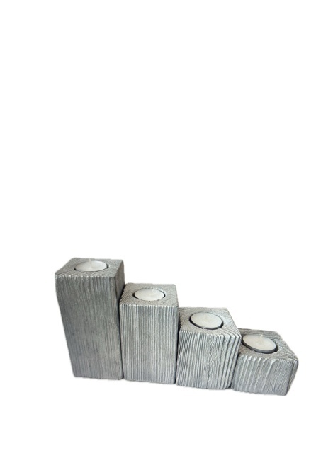 W komplecie znajdziesz aż cztery świeczniki o różnej wysokości (6cm, 9cm, 12cm i 15cm), co pozwala na stworzenie urokliwej kompozycji na stole lub półce. Możesz umieścić w nich zarówno standardowe świece stołowe jak i zapachowe tealighty - możliwości aranżacyjne są praktycznie nieograniczone.